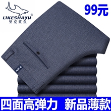 里克鲨鱼男士休闲裤子中年男裤夏季春季薄款免烫四面弹力弹性长裤