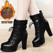 马丁靴女鞋子秋冬季2016新款粗跟短靴子韩版加绒冬鞋百搭高跟鞋潮