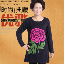中年中老年女装针织衫长袖妈妈装春装中长款打底衫加肥加大码秋季