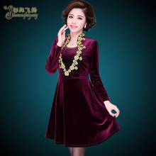 2016新款中老年女装春季金丝绒连衣裙中年妈妈装长袖40-50裙子女
