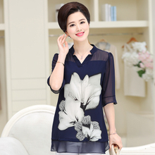 中老年女装夏装雪纺衫短袖T恤母亲节中年气质妈妈装夏季印花上衣