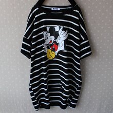 2017韩版新款条纹前后米奇宽松卡通短袖 大码女装休闲夏季半袖T恤