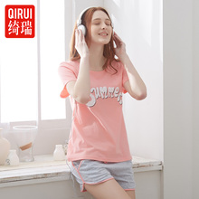 绮瑞韩版夏季女士纯棉睡衣短袖短裤运动家居服套装可外穿居家服