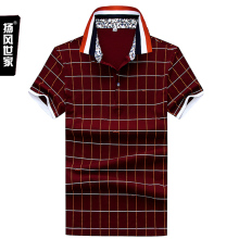 中年人短袖男2017新款 潮流格子polo衫 翻领休闲体恤男修身上衣服