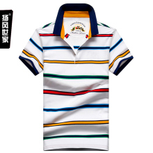 中年男士短袖t恤2017新款翻领polo衫夏季半袖男潮流条纹体恤上衣