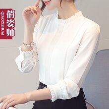 春秋装长袖雪纺衬衫女2017新春女士长袖上衣镂空气质打底雪纺衫潮