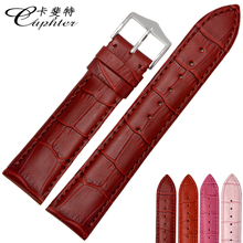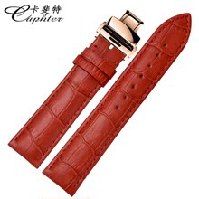 卡斐特蝴蝶扣手表带20MM牛皮真皮表带18MM皮表链女红色16手表配件