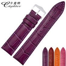 卡斐特蝴蝶扣手表带20MM牛皮真皮表带18MM紫色手表配件16皮表链女