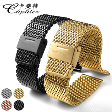 卡斐特米兰不锈钢表带22男手表带黑色金钢带20mm手表配件18女表链