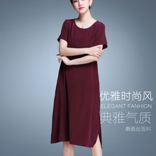 中年重磅真丝连衣裙夏新款大码 加大宽松印花短袖桑蚕丝裙子