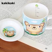 kakikaki可爱陶瓷马克杯带盖刻度牛奶杯喝水杯子猴宝宝创意卡通杯