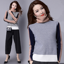 毛衣女2016秋冬新款潮气质优雅大码女装套头印花针织衫圆领打底衫
