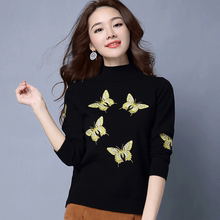 蝴蝶刺绣女士毛衣秋冬季新款2016短款套头小立领羊毛衫针织打底衫