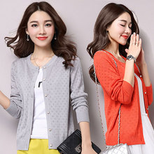 春夏季针织衫女开衫短款薄外套韩版宽松长袖双排扣披肩大码空调衫