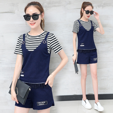 牛仔套装女2017夏装新款时尚女装韩版短袖短裤休闲三件套女