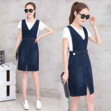 2017夏装新款时尚牛仔裙背带裙中长连衣裙女装两件套潮夏天套装裙