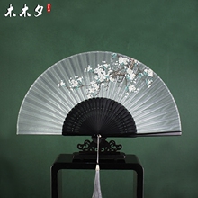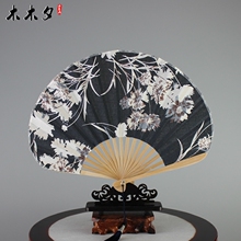 木木夕扇子折扇女式中国风扇子和风扇子女扇棉布扇工艺扇子礼品扇