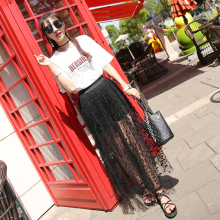 纱裙2017春夏新款高腰网纱半身裙蓬蓬裙女中长款a字裙百褶透视裙