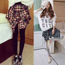 韩版时尚舞蹈裤嘻哈潮裤女春秋外穿格子衬衫裙摆假两件打底裤裙裤