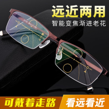 内渐进多焦点远近两用智能变焦双光近视远视变色老花半框眼镜男士