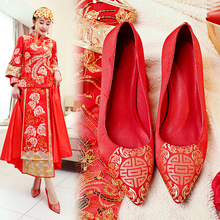 春季女士红色结婚鞋子2017中式秀禾服新娘敬酒红鞋高跟绣花踩堂鞋