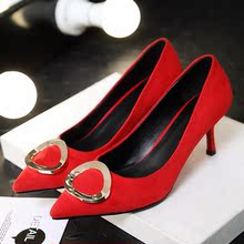红色结婚鞋子女秋2017新款韩版红鞋尖头高跟婚礼鞋敬酒百搭新娘鞋