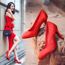 红色结婚鞋子女秋2017新款春季红鞋高跟百搭韩版新娘鞋敬酒婚礼鞋