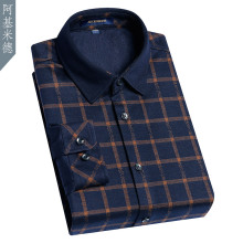 阿基米德男装秋冬新品男士修身格子长袖衬衫男加厚休闲长衬衣男