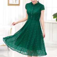 中年妈妈装夏装连衣裙40-50岁中老年女装短袖夏季中长款蕾丝裙子