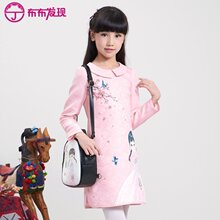 儿童旗袍2016新款春秋季女宝宝唐装长袖印花开叉中大童旗袍公主裙