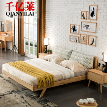 千亿莱实木床1.8米1.5米现代简约卧室白蜡木床日式纯全实木双人床