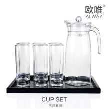 欧唯无铅玻璃杯套装 欧式创意冷水壶黑柳木托盘耐热水壶杯具套装