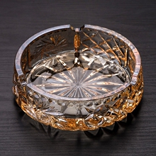 欧唯水晶玻璃烟灰缸创意个性 金色烟灰缸大号 客厅欧式烟缸礼品