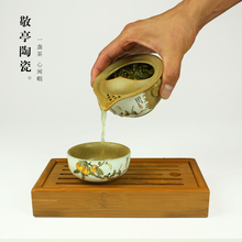 对己|古陶快客杯 一壶一杯便携陶瓷个人桃花功夫茶具套装大碗包邮