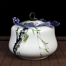 知足常乐白瓷茶叶罐密封罐手工绘竹叶陶瓷罐带盖超特大号小号储存