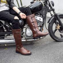 新款秋冬韩版高筒牛仔机车男靴 潮流长筒朋克舞台演出皮靴军靴潮