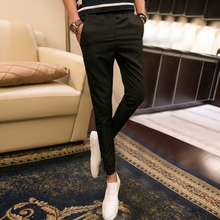 夏季纯色哈伦裤九分裤男小脚裤修身青少年学生束脚裤小脚9分裤子