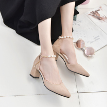 2017春新款春夏中空尖头粗跟一字扣串珠高跟5-7cm单鞋小跟 女瓢鞋