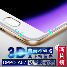 oppoa57钢化膜全屏覆盖 A57m手机3d曲面软边抗蓝光透明原装包边彩