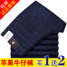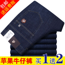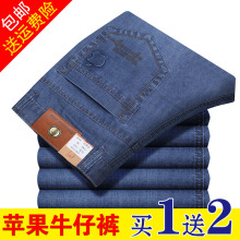 正品苹果牛仔裤男中年男士春夏季薄款直筒宽松高腰大码弹力长裤子