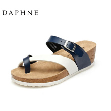 Daphne/达芙妮正品夏季女凉鞋中坡跟夹趾撞色休闲凉拖鞋女清仓