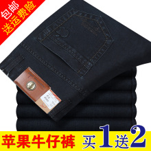 秋冬厚款苹果牛仔裤 中年男士裤子弹力高腰直筒宽松大码休闲 男裤