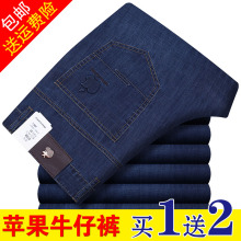 【天天特价】春季男士裤子2017中年牛仔裤男宽松直筒薄款弹力大码