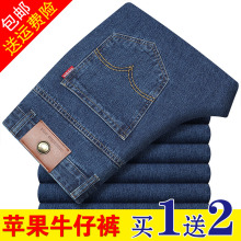 苹果牛仔裤男春秋厚款中年男士休闲长裤秋季高腰宽松牛仔直筒裤子