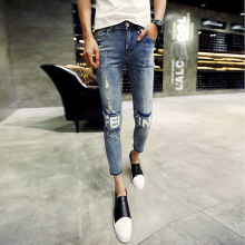 2016夏男装破洞九分牛仔裤男韩版小脚裤修身9分裤男生乞丐裤潮裤