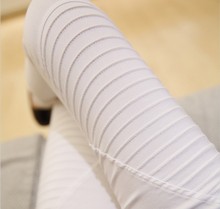 2016春夏韩版显瘦褶皱弹力高腰白色小脚铅笔裤修身休闲长裤打底裤