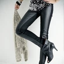 仿皮裤夏薄女高腰紧身显瘦大码不规则亚光拼接仿皮小脚打底裤