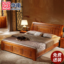 华南家具 新古典卧室雕花全实木床 中式1.8米带抽屉储物床双人床