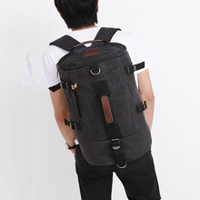 sisea圆桶包商务复古双肩帆布包旅行包双肩包韩版潮包斜挎包手提