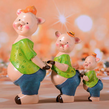 现代田园创意树脂娃娃猪工艺品三口之家动物卡通电表箱小装饰摆件